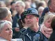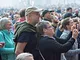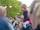 Vagtskiftet ved Marselisborg Slot skærtorsdag kl. 12 tiltrak mange fremmødte, mens politiets indsatsleder undervejs tog sig tid til at besvare spørgsmål fra en nysgerrig dreng.