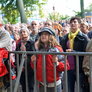 Vagtskiftet ved Marselisborg Slot skærtorsdag kl. 12 tiltrak mange fremmødte, mens politiets indsatsleder undervejs tog sig tid til at besvare spørgsmål fra en nysgerrig dreng.