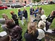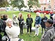 Vagtskiftet ved Marselisborg Slot skærtorsdag kl. 12 tiltrak mange fremmødte, mens politiets indsatsleder undervejs tog sig tid til at besvare spørgsmål fra en nysgerrig dreng.