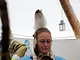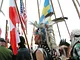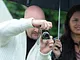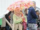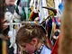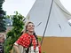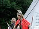 Vagtskiftet ved Marselisborg Slot skærtorsdag kl. 12 tiltrak mange fremmødte, mens politiets indsatsleder undervejs tog sig tid til at besvare spørgsmål fra en nysgerrig dreng.