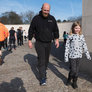 Vagtskiftet ved Marselisborg Slot skærtorsdag kl. 12 tiltrak mange fremmødte, mens politiets indsatsleder undervejs tog sig tid til at besvare spørgsmål fra en nysgerrig dreng.
