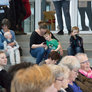 Vagtskiftet ved Marselisborg Slot skærtorsdag kl. 12 tiltrak mange fremmødte, mens politiets indsatsleder undervejs tog sig tid til at besvare spørgsmål fra en nysgerrig dreng.