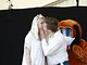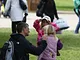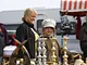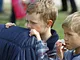 Vagtskiftet ved Marselisborg Slot skærtorsdag kl. 12 tiltrak mange fremmødte, mens politiets indsatsleder undervejs tog sig tid til at besvare spørgsmål fra en nysgerrig dreng.