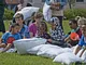 Omkring 50 børn med forældre var mødt op til søndagens pudekamp, ved Fuglebakkevej 70. Børn og forældre fik sig rørt og havde en hyggelig time sammen med pudekamp og efterfølgende saftevand.