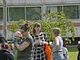 Vagtskiftet ved Marselisborg Slot skærtorsdag kl. 12 tiltrak mange fremmødte, mens politiets indsatsleder undervejs tog sig tid til at besvare spørgsmål fra en nysgerrig dreng.