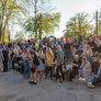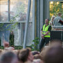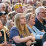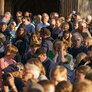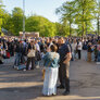 Vagtskiftet ved Marselisborg Slot skærtorsdag kl. 12 tiltrak mange fremmødte, mens politiets indsatsleder undervejs tog sig tid til at besvare spørgsmål fra en nysgerrig dreng.