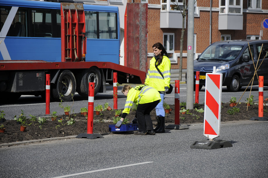 Midt ude på Nørreport var en flok arkitektstuderende, sammen med Marie Markmann i fuld gang med at tilplante midterrabatten med blomstrende og spiseligt grønt, som enhver må plukke af og tage med hjem i gryderne.