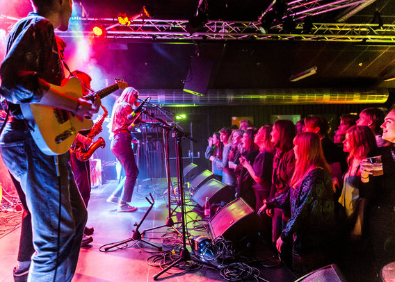 Radar_HIGH's bookinggruppe, der består af seks elever fra Aarhus Katedralskole og Aarhus Statsgymnasium havde valgte fire bands bestående af Udkendte Rødder, Moebius, Juliet Knows og Lunar og de gav det fuld gas for de mange gæster...