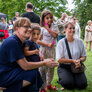 Vagtskiftet ved Marselisborg Slot skærtorsdag kl. 12 tiltrak mange fremmødte, mens politiets indsatsleder undervejs tog sig tid til at besvare spørgsmål fra en nysgerrig dreng.
