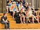 Vagtskiftet ved Marselisborg Slot skærtorsdag kl. 12 tiltrak mange fremmødte, mens politiets indsatsleder undervejs tog sig tid til at besvare spørgsmål fra en nysgerrig dreng.