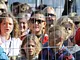 Vagtskiftet ved Marselisborg Slot skærtorsdag kl. 12 tiltrak mange fremmødte, mens politiets indsatsleder undervejs tog sig tid til at besvare spørgsmål fra en nysgerrig dreng.