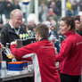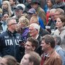 Vagtskiftet ved Marselisborg Slot skærtorsdag kl. 12 tiltrak mange fremmødte, mens politiets indsatsleder undervejs tog sig tid til at besvare spørgsmål fra en nysgerrig dreng.