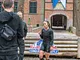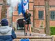 Vagtskiftet ved Marselisborg Slot skærtorsdag kl. 12 tiltrak mange fremmødte, mens politiets indsatsleder undervejs tog sig tid til at besvare spørgsmål fra en nysgerrig dreng.