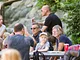 Vagtskiftet ved Marselisborg Slot skærtorsdag kl. 12 tiltrak mange fremmødte, mens politiets indsatsleder undervejs tog sig tid til at besvare spørgsmål fra en nysgerrig dreng.