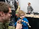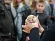 Vagtskiftet ved Marselisborg Slot skærtorsdag kl. 12 tiltrak mange fremmødte, mens politiets indsatsleder undervejs tog sig tid til at besvare spørgsmål fra en nysgerrig dreng.