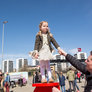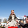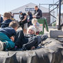 Vagtskiftet ved Marselisborg Slot skærtorsdag kl. 12 tiltrak mange fremmødte, mens politiets indsatsleder undervejs tog sig tid til at besvare spørgsmål fra en nysgerrig dreng.