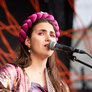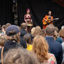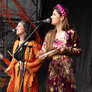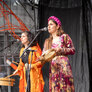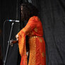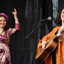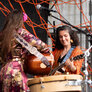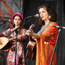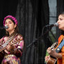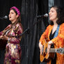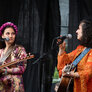 De to smukke, farverige kvinder spillede på udendørs scene ved Institut X. To kraftfulde sangerinder.