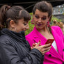 Vagtskiftet ved Marselisborg Slot skærtorsdag kl. 12 tiltrak mange fremmødte, mens politiets indsatsleder undervejs tog sig tid til at besvare spørgsmål fra en nysgerrig dreng.
