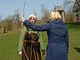 Vagtskiftet ved Marselisborg Slot skærtorsdag kl. 12 tiltrak mange fremmødte, mens politiets indsatsleder undervejs tog sig tid til at besvare spørgsmål fra en nysgerrig dreng.