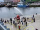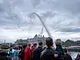 Vagtskiftet ved Marselisborg Slot skærtorsdag kl. 12 tiltrak mange fremmødte, mens politiets indsatsleder undervejs tog sig tid til at besvare spørgsmål fra en nysgerrig dreng.