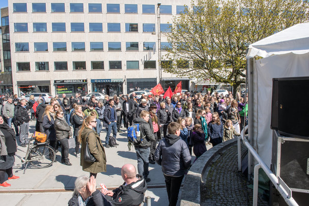 Traditionen tro, blev 1. maj festligholdt på rådhuspladsen. Med røde faner, taler og underholdning.