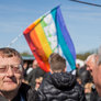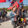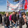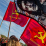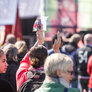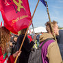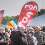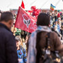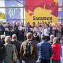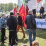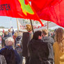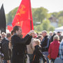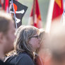 Både røde og sorte faner havde fundet vej til pladsen foran talerstolen på den store scene. Heldigvis levede farverne i fin harmoni.