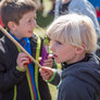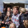 Vagtskiftet ved Marselisborg Slot skærtorsdag kl. 12 tiltrak mange fremmødte, mens politiets indsatsleder undervejs tog sig tid til at besvare spørgsmål fra en nysgerrig dreng.