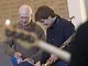 Vagtskiftet ved Marselisborg Slot skærtorsdag kl. 12 tiltrak mange fremmødte, mens politiets indsatsleder undervejs tog sig tid til at besvare spørgsmål fra en nysgerrig dreng.
