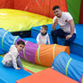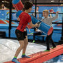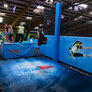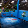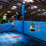 indendørsaktiviteter, trampoliner, Dogdeball og Wipeout .