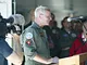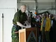 Vagtskiftet ved Marselisborg Slot skærtorsdag kl. 12 tiltrak mange fremmødte, mens politiets indsatsleder undervejs tog sig tid til at besvare spørgsmål fra en nysgerrig dreng.