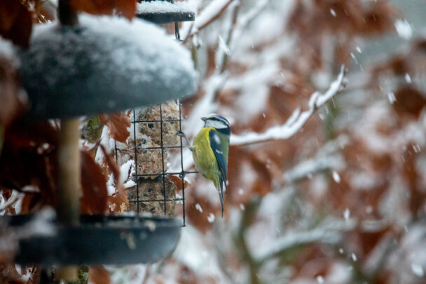 Trods det solrige og frostklare vejr var der ikke meget liv udendørs - bortset fra småfuglene, der flokkedes om foderbrættet