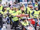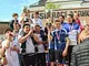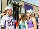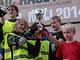 Vagtskiftet ved Marselisborg Slot skærtorsdag kl. 12 tiltrak mange fremmødte, mens politiets indsatsleder undervejs tog sig tid til at besvare spørgsmål fra en nysgerrig dreng.