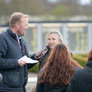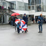 Vagtskiftet ved Marselisborg Slot skærtorsdag kl. 12 tiltrak mange fremmødte, mens politiets indsatsleder undervejs tog sig tid til at besvare spørgsmål fra en nysgerrig dreng.