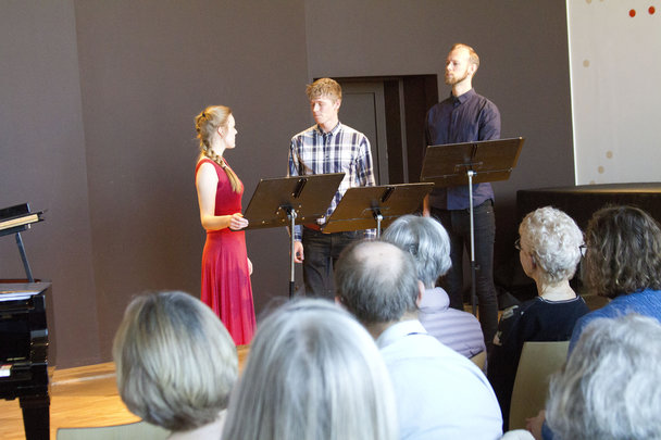 Publikum for en lille fortælling, om, hvad sangen handler om, inden der synges