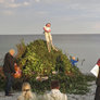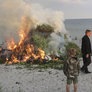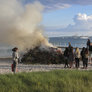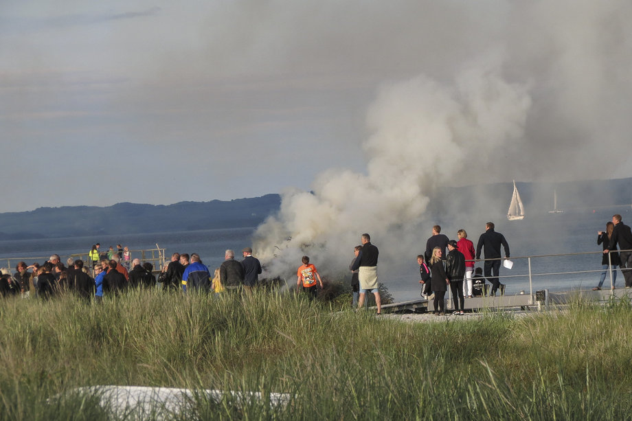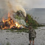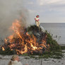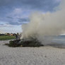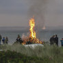 Det var en dejlig aften på stranden ved Fedet. Der var godt gang i bålene. Heksen ja hun døde af røgforgiftning. Og så kom Dannebrog forbi ude på vandet.