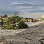 En tur på stranden på Fedet. Som sædvanlig et bål for hver stikvej.