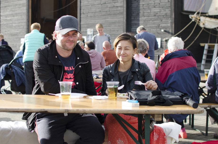Sankt Hans aften i Ebeltoft ved både skude havnen og fregatten Jylland.