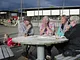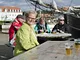 Vagtskiftet ved Marselisborg Slot skærtorsdag kl. 12 tiltrak mange fremmødte, mens politiets indsatsleder undervejs tog sig tid til at besvare spørgsmål fra en nysgerrig dreng.