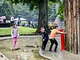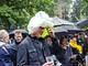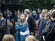 Vagtskiftet ved Marselisborg Slot skærtorsdag kl. 12 tiltrak mange fremmødte, mens politiets indsatsleder undervejs tog sig tid til at besvare spørgsmål fra en nysgerrig dreng.