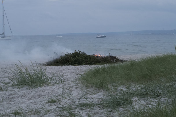 Det var en dejlig aften på stranden ved Fedet. Der var godt gang i bålene. Heksen ja hun døde af røgforgiftning. Og så kom Dannebrog forbi ude på vandet.