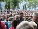 Vagtskiftet ved Marselisborg Slot skærtorsdag kl. 12 tiltrak mange fremmødte, mens politiets indsatsleder undervejs tog sig tid til at besvare spørgsmål fra en nysgerrig dreng.