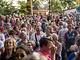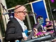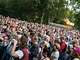 Vagtskiftet ved Marselisborg Slot skærtorsdag kl. 12 tiltrak mange fremmødte, mens politiets indsatsleder undervejs tog sig tid til at besvare spørgsmål fra en nysgerrig dreng.