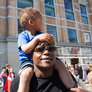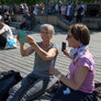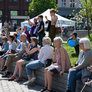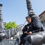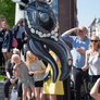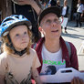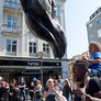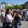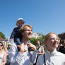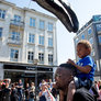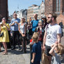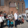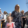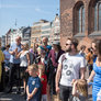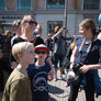 Vagtskiftet ved Marselisborg Slot skærtorsdag kl. 12 tiltrak mange fremmødte, mens politiets indsatsleder undervejs tog sig tid til at besvare spørgsmål fra en nysgerrig dreng.