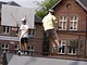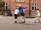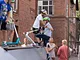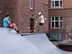 Der er fart over feltet når der bliver kørt på ramperne i skolegården. Der kan køres på rulleskøjter, skateboard og løbehjul på en ret udfordrende bane. I dag var det kun løbehjul der var i gang, varmen holdt mange fra så meget fysisk udfoldelse, men de der kørte sparede ikke på krudtet. Helt klart et besøg værd hvis man er i området.