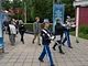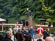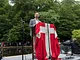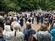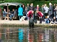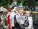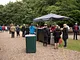 Vagtskiftet ved Marselisborg Slot skærtorsdag kl. 12 tiltrak mange fremmødte, mens politiets indsatsleder undervejs tog sig tid til at besvare spørgsmål fra en nysgerrig dreng.
