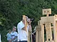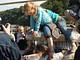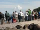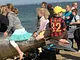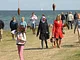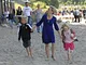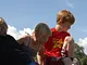 Vagtskiftet ved Marselisborg Slot skærtorsdag kl. 12 tiltrak mange fremmødte, mens politiets indsatsleder undervejs tog sig tid til at besvare spørgsmål fra en nysgerrig dreng.