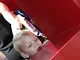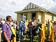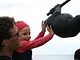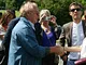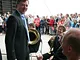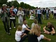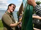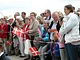 Vagtskiftet ved Marselisborg Slot skærtorsdag kl. 12 tiltrak mange fremmødte, mens politiets indsatsleder undervejs tog sig tid til at besvare spørgsmål fra en nysgerrig dreng.
