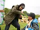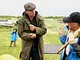 Vagtskiftet ved Marselisborg Slot skærtorsdag kl. 12 tiltrak mange fremmødte, mens politiets indsatsleder undervejs tog sig tid til at besvare spørgsmål fra en nysgerrig dreng.