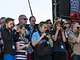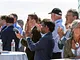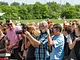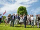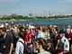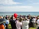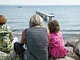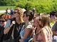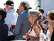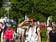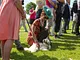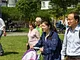 Vagtskiftet ved Marselisborg Slot skærtorsdag kl. 12 tiltrak mange fremmødte, mens politiets indsatsleder undervejs tog sig tid til at besvare spørgsmål fra en nysgerrig dreng.