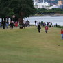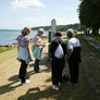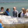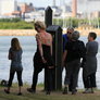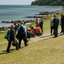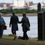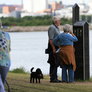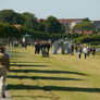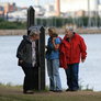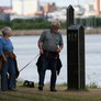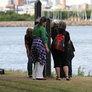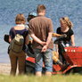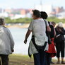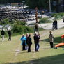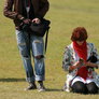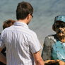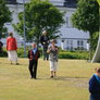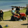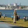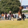 Vagtskiftet ved Marselisborg Slot skærtorsdag kl. 12 tiltrak mange fremmødte, mens politiets indsatsleder undervejs tog sig tid til at besvare spørgsmål fra en nysgerrig dreng.